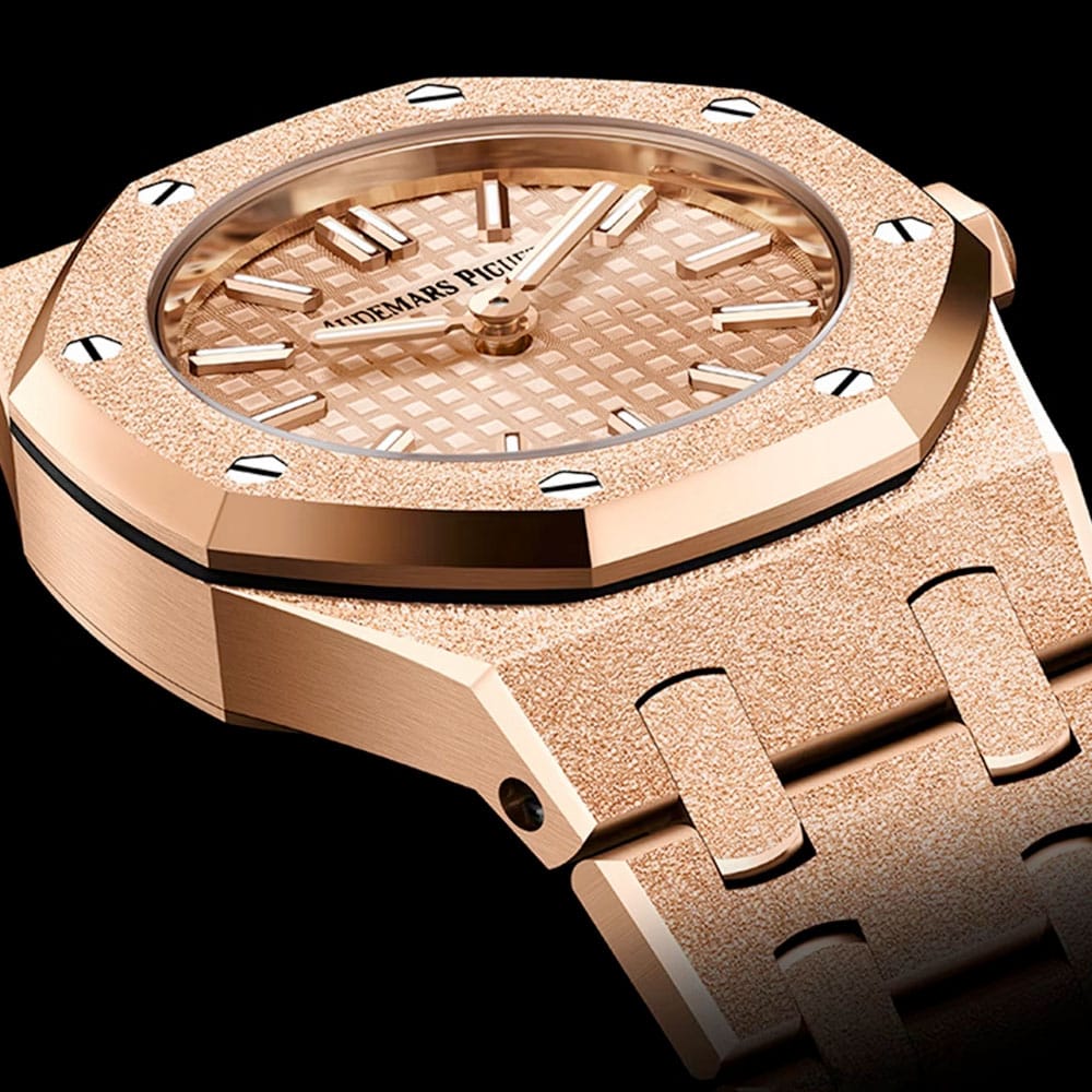 This reference is a masterclass in miniaturization and luxury. Its standout Frosted Gold finish, inspired by artisan Carolina Bucci, creates a dazzling, jewelry-level sparkle without relying on diamonds. At just 23 mm, it delivers refined sophistication and signature Royal Oak styling that’s unique in the current market.