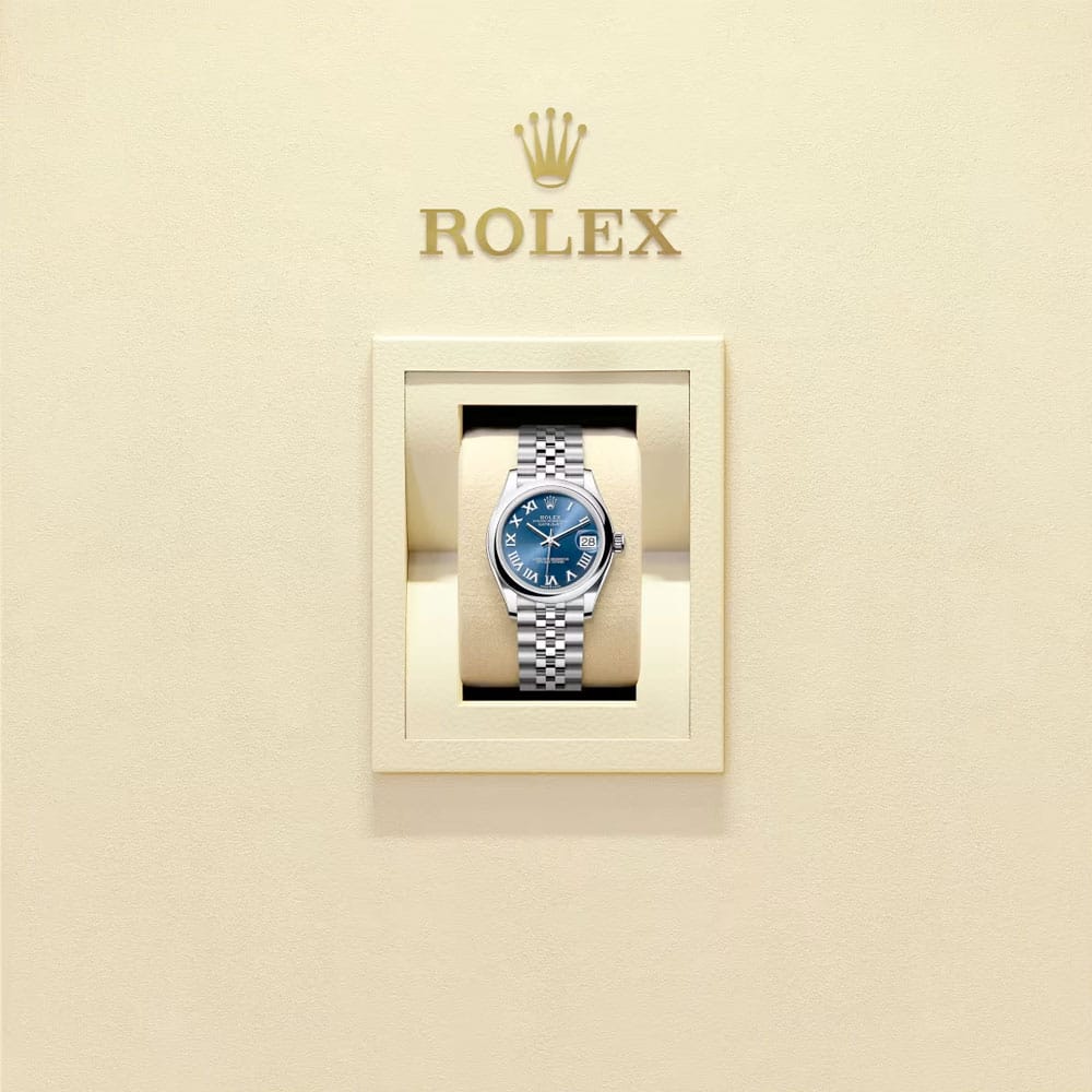 The Rolex Datejust 31 Ref. 278240-0018 is a sophisticated women’s timepiece that blends classic Rolex design with modern refinements. Crafted entirely in Oystersteel, it features a bright blue sunray-finish dial, a domed bezel, and the reliable, high-performance Calibre 2236 movement. The 31 mm case size makes it elegantly wearable for small-to-medium wrists, while the performance specs and finishing retain the hallmark robustness Rolex is known for.
