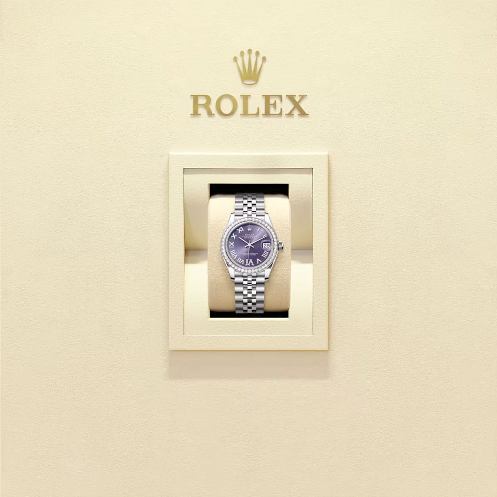 The Rolex Datejust 31 Ref. 278384RBR-0030 is a captivating expression of modern refinement and classic watchmaking excellence. This exquisite timepiece merges timeless aesthetics with the innovation and precision that define the Rolex legacy. With its Aubergine dial, diamond-set bezel, and Oystersteel and white gold Rolesor construction, this model radiates fresh sophistication and enduring charm — an ideal companion for women who appreciate subtle luxury and uncompromising performance.